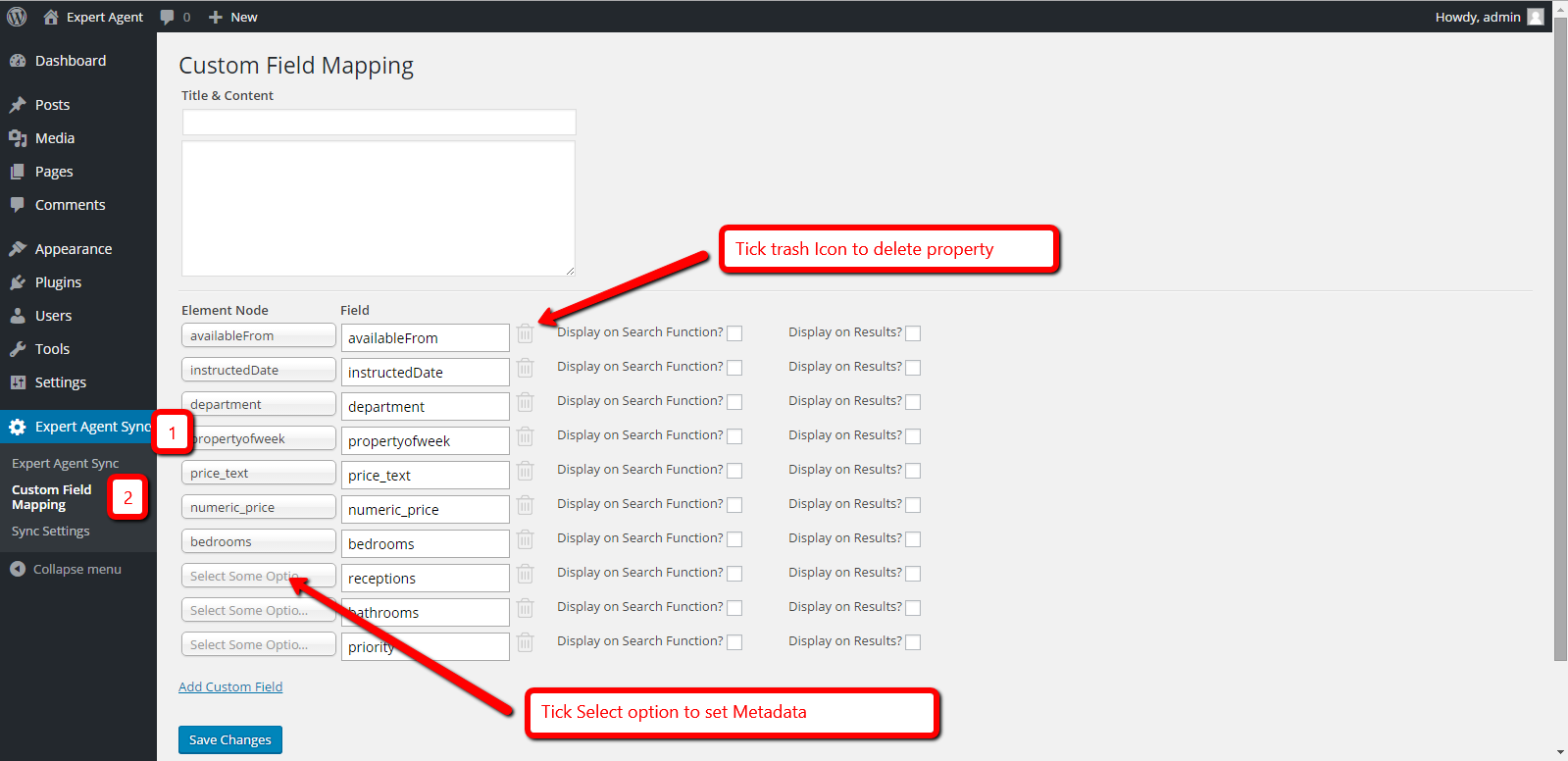 Step 4. Go to the Expert Agent Sync -> Custom Field Mapping and set your desired fields to be added as metadata